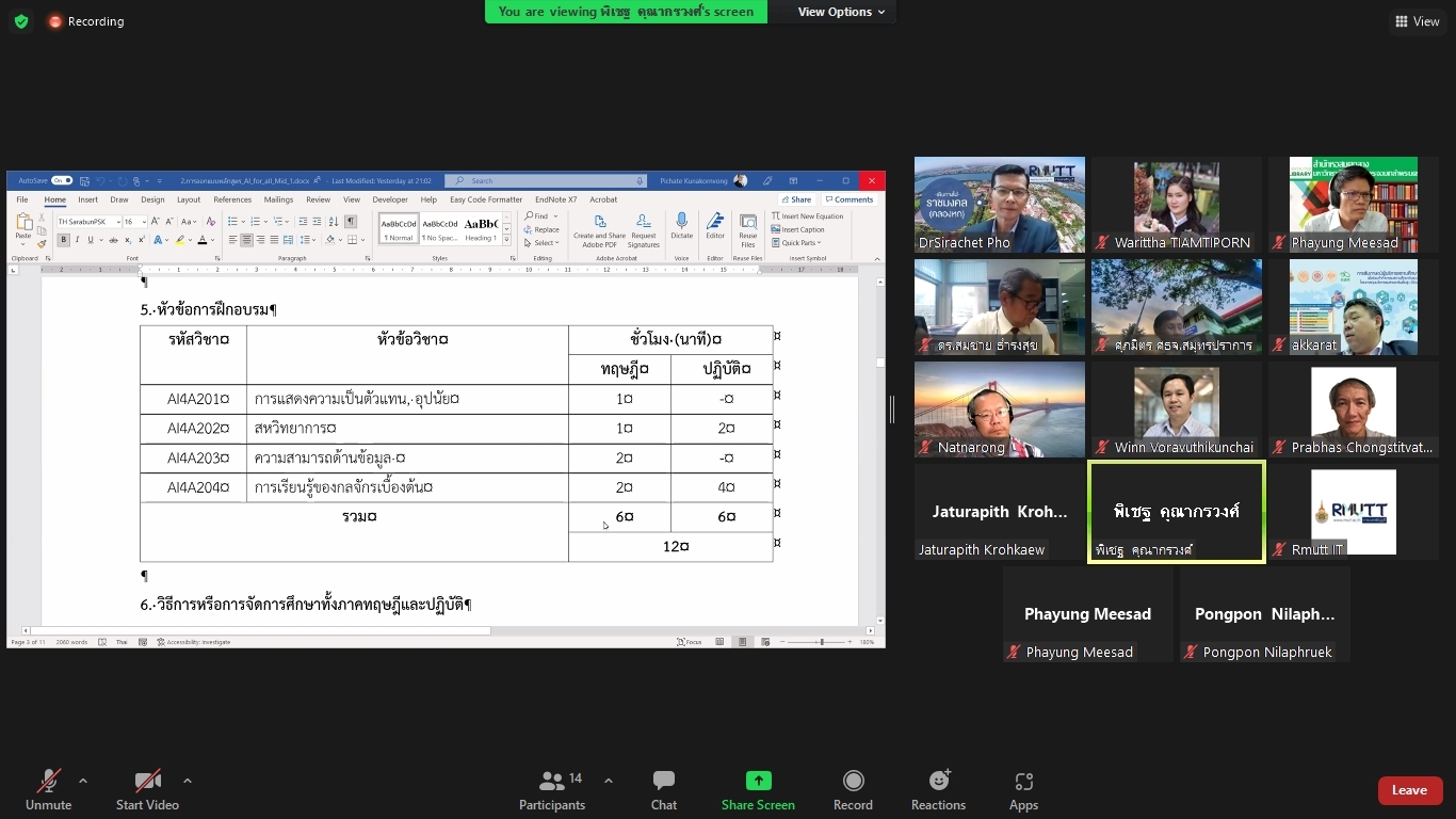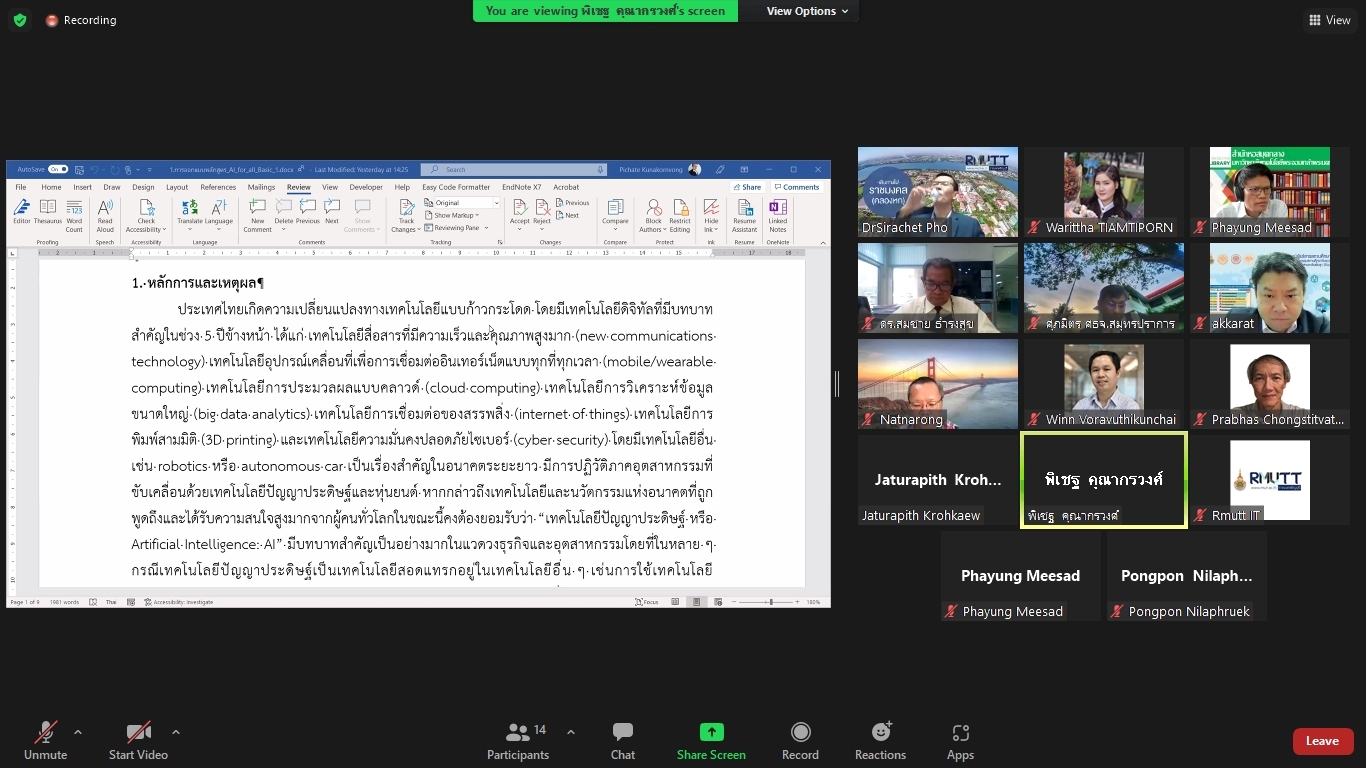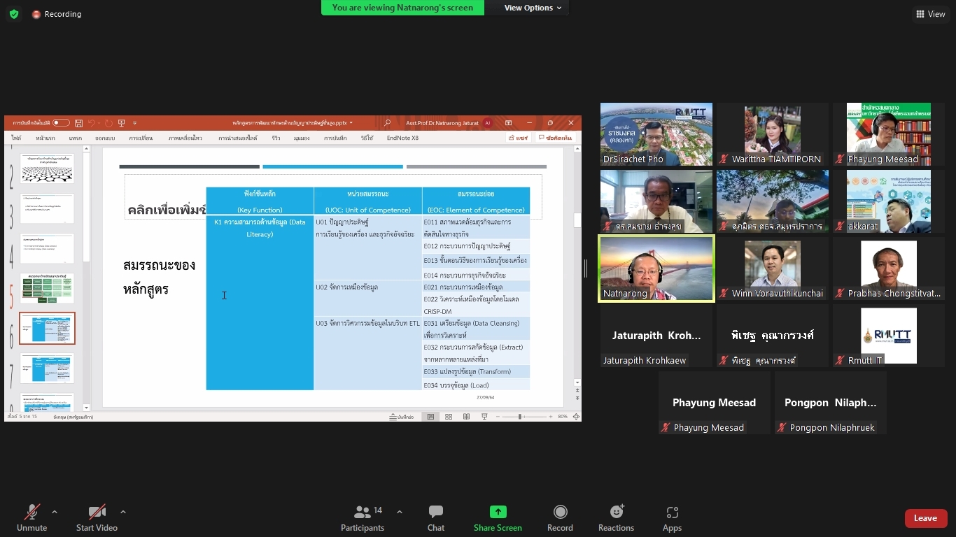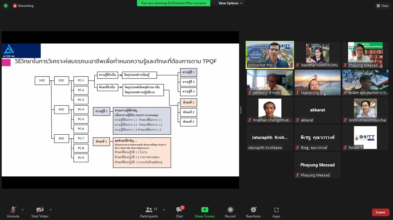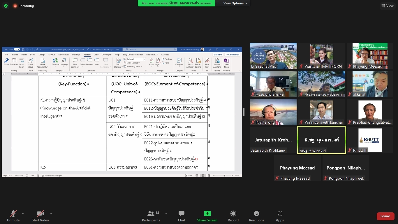 คณะผู้วิจัยโครงการพัฒนาทักษะด้านปัญญาประดิษฐ์ขั้นพื้นฐานสำหรับเด็กและเยาวชนในพื้นที่จังหวัดปทุมธานีและปริมณฑล ได้จัดประชุมคณะรับรอง (Endorsement Committee) หลักสูตรฐานสมรรถนะการพัฒนาทักษะด้านปัญญาประดิษฐ์ขั้นพื้นฐานสำหรับเด็กและเยาวชน ในวันที่ 27 กันยายน 2564 เวลา 13.30 – 16.30 น. ผ่านการประชุมออนไลน์ ZOOM meeting โดยมีผู้เข้าร่วมการประชุมหลักสูตรฐานสมรรถนะการพัฒนาทักษะด้านปัญญาประดิษฐ์ขั้นพื้นฐานสำหรับเด็กและเยาวชน ดังนี้
